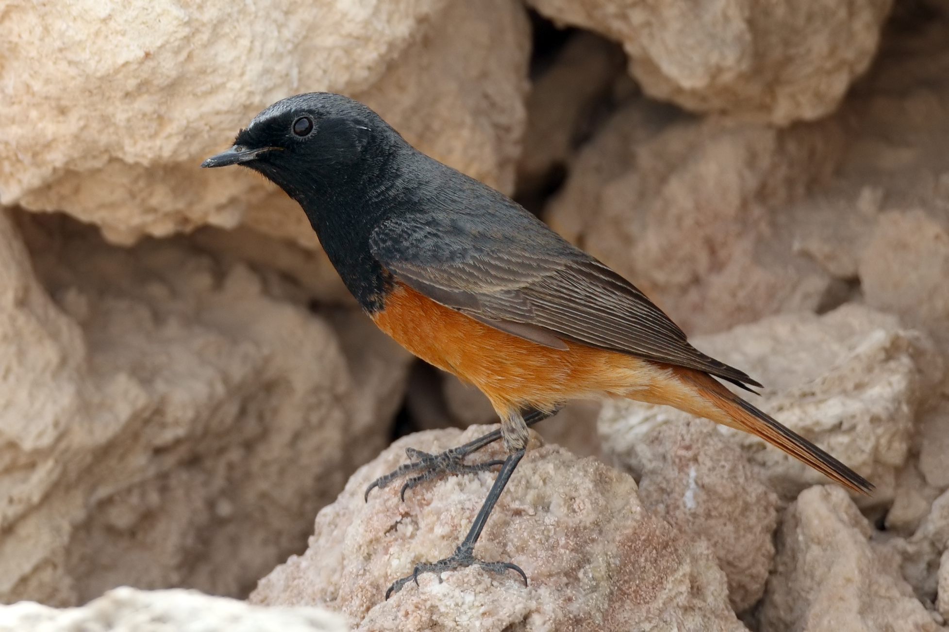 The eastern Black Redstart is a common winter visitor and passage migrant in Qatar, commonly observed from November to February, with peak sightings in January. Known for its active foraging and distinctive red tail display. Its tail-bobbing behavior and striking appearance make it a captivating presence during the cooler months.