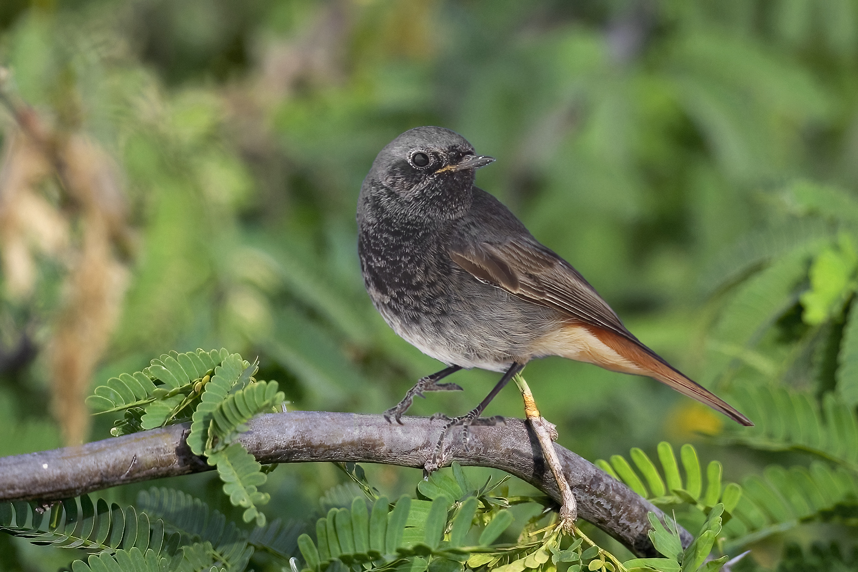 The Western Black Redstart is highly adaptable and thrives in various habitats. It is commonly seen in areas with trees, bushes, or scattered vegetation, where it perches to hunt insects. Along shorelines, it feeds on small crustaceans and insects left by the tide. The bird is frequently observed on rocks, posts, or elevated surfaces, scanning for prey. It actively hunts by launching mid-air attacks or foraging on the ground. Its characteristic tail-bobbing and quivering movements, shared with the Common Redstart, make it easy to identify by behavior.
