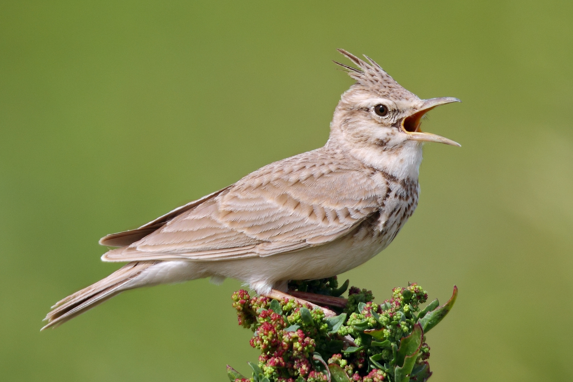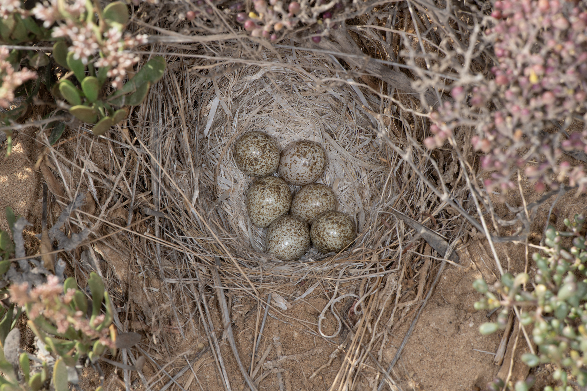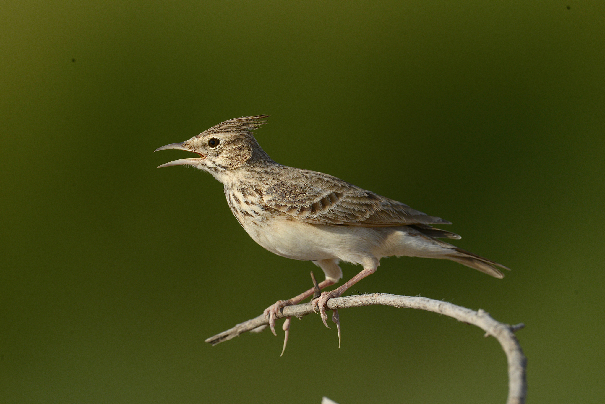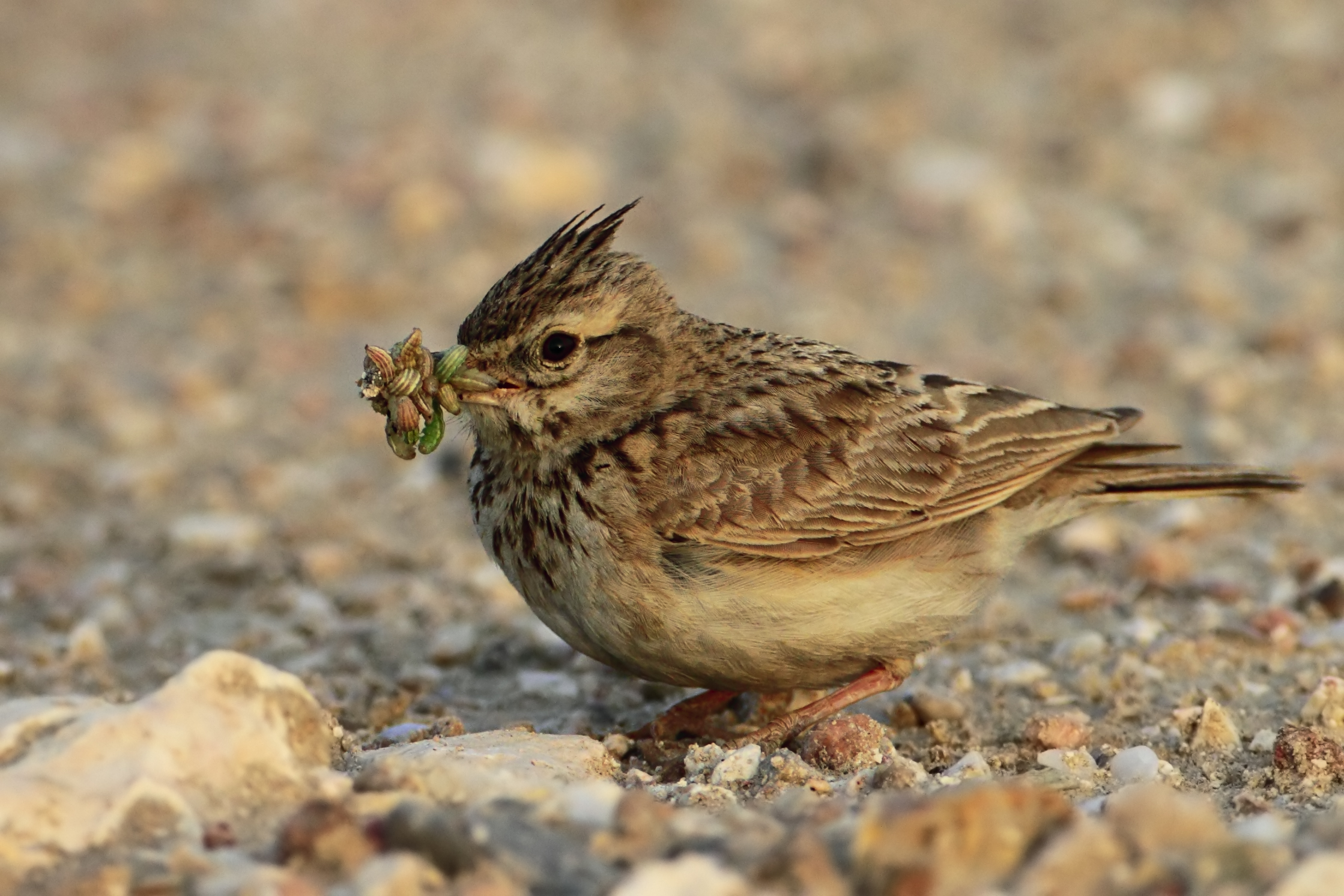 The eponymous lark of Qatar and a resident breeder. Found in all habitats, and easily observed running on the ground or while flying low above the ground. Its distinctive crest is a good identification feature, as is the sweet melodious "deedle-diu" call. Its beautifully varied song is delivered from the ground or while hovering high, almost out of sight, in the air. It feeds on seeds and insects, and nests on the ground under tufts of grass and bushes.
