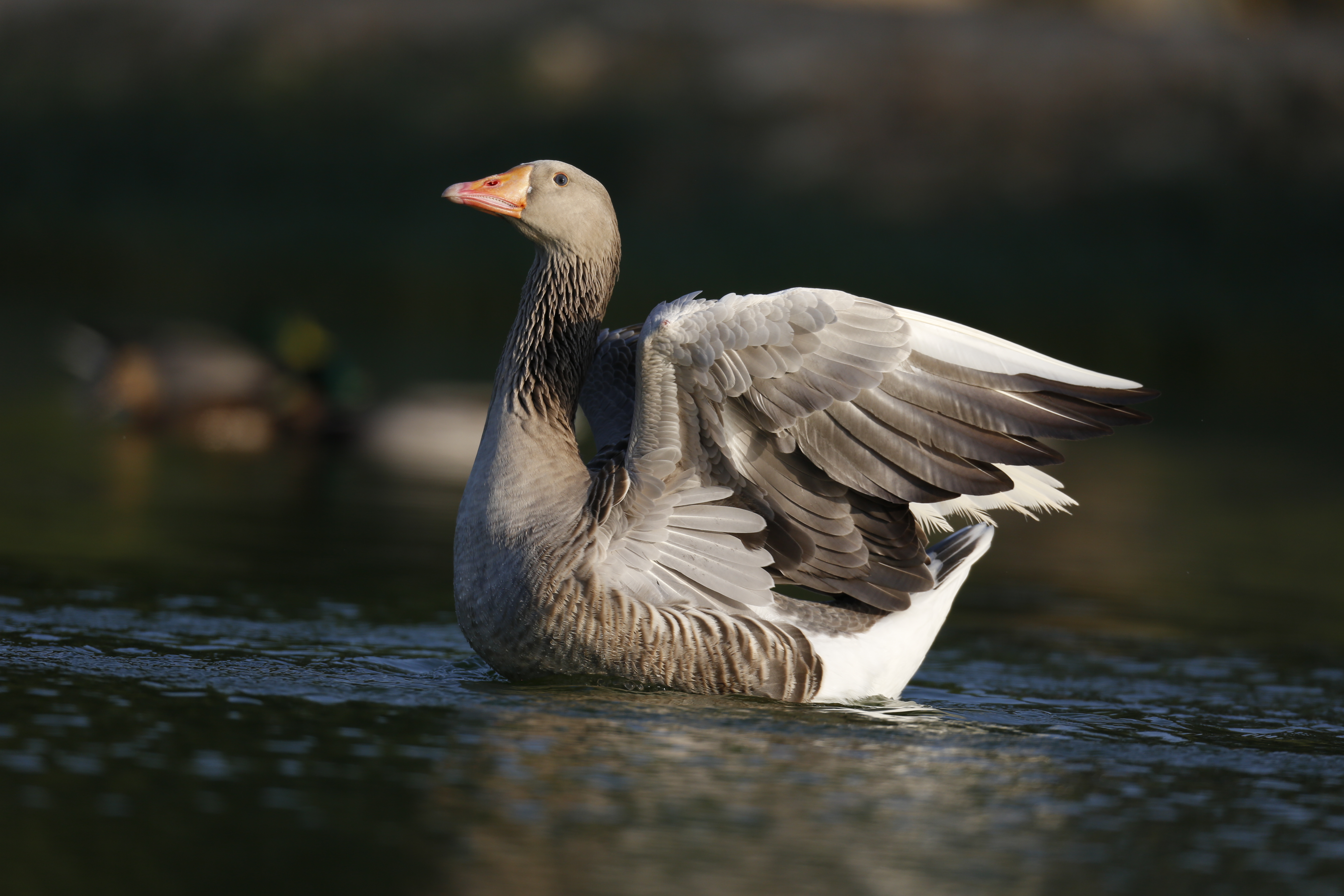 The Greylag Goose is a large, bulky goose and is considered the ancestor of most domestic geese.