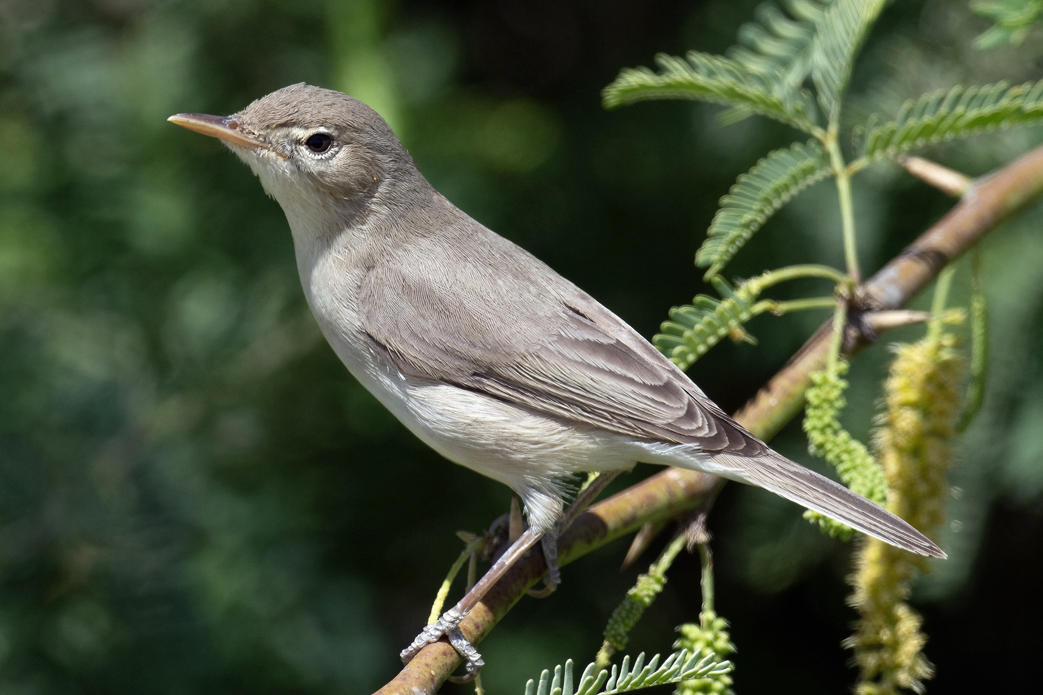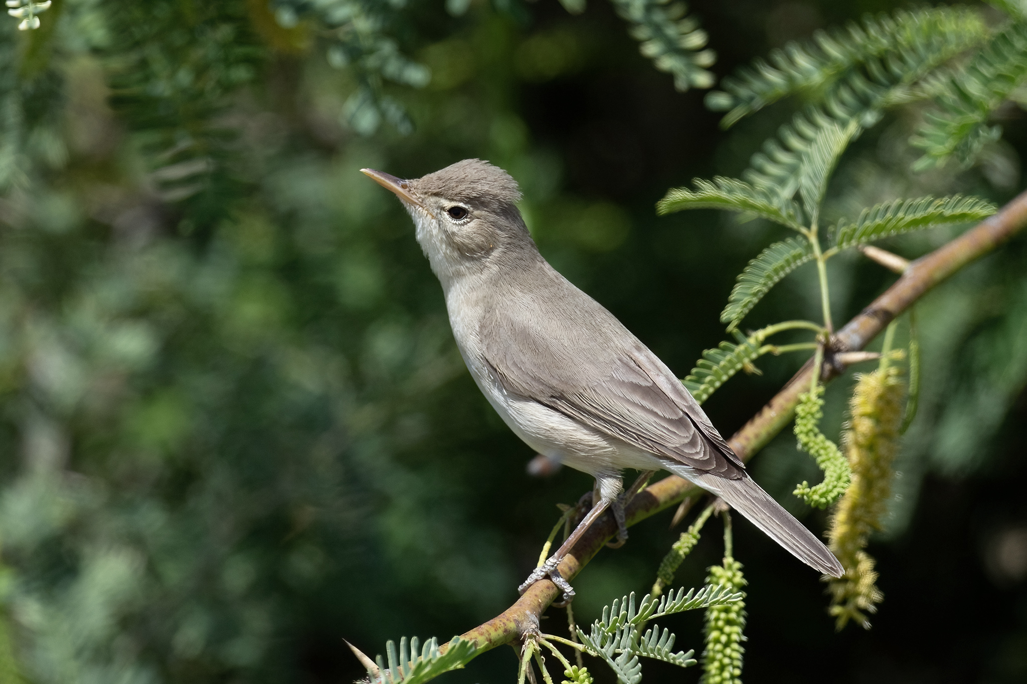 The Eastern Olivaceous Warbler is a medium-sized warbler and regular passage migrant, typically observed during spring and autumn in small numbers. Its drab grey and pale brown plumage, small size, and shy behavior make it one of the most inconspicuous birds. It is often found high in the canopy of trees and tall bushes, flitting silently from branch to branch. This bird rarely comes to the ground and usually only flies when disturbed. It feeds quietly on insects and fruits, making it hard to notice.