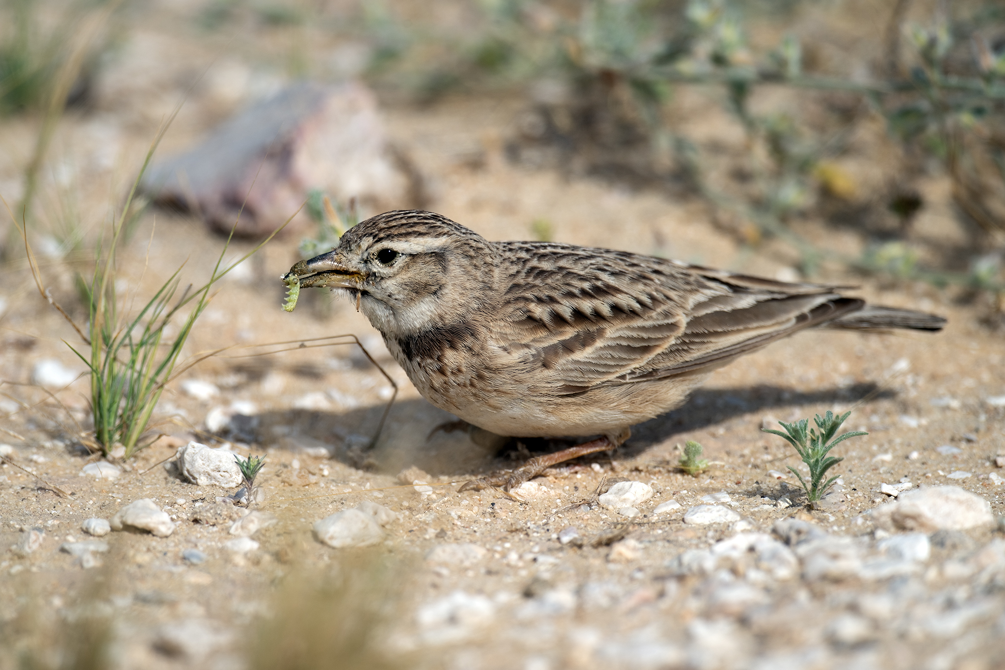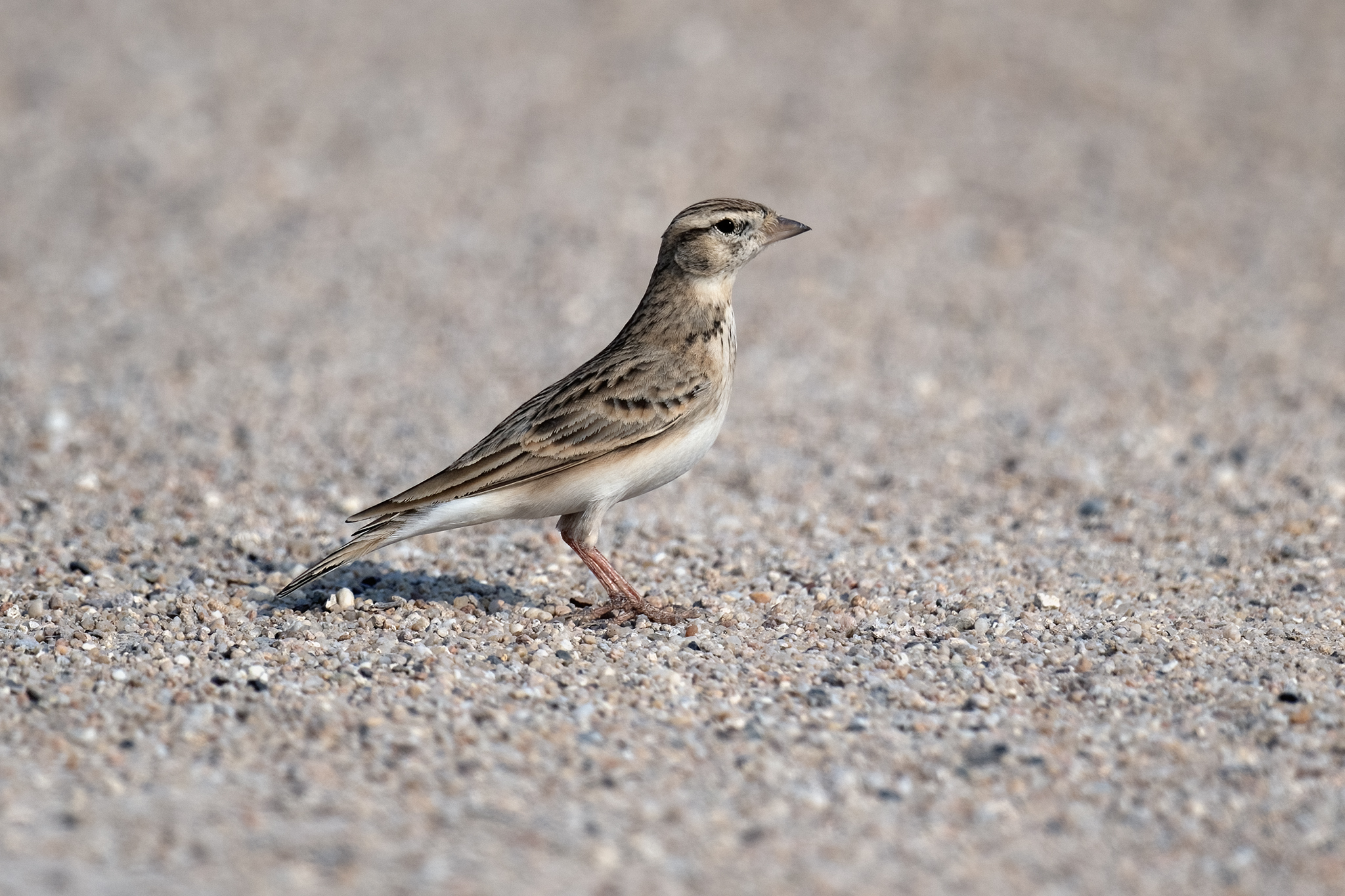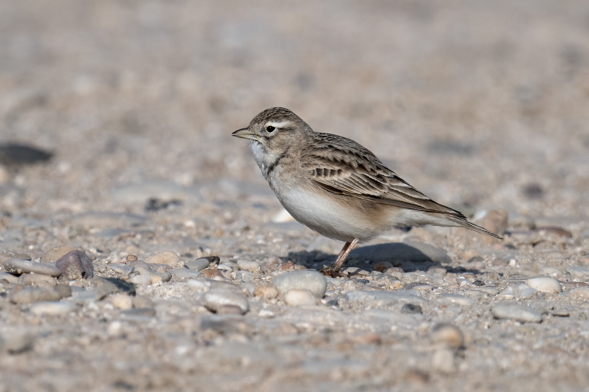 A winter visitor, but also an occasional breeder that has been noted in all months of the year. This small lark is often seen in flocks scurrying over rough ground, desert and ploughed fields. It is highly variable in colour - some flocks comprise pale sandy brown birds, in others they are grey, while yet others are of reddish brown birds. These different plumages reflect the colour of the habitat (nesting ground) from where each flock originates.