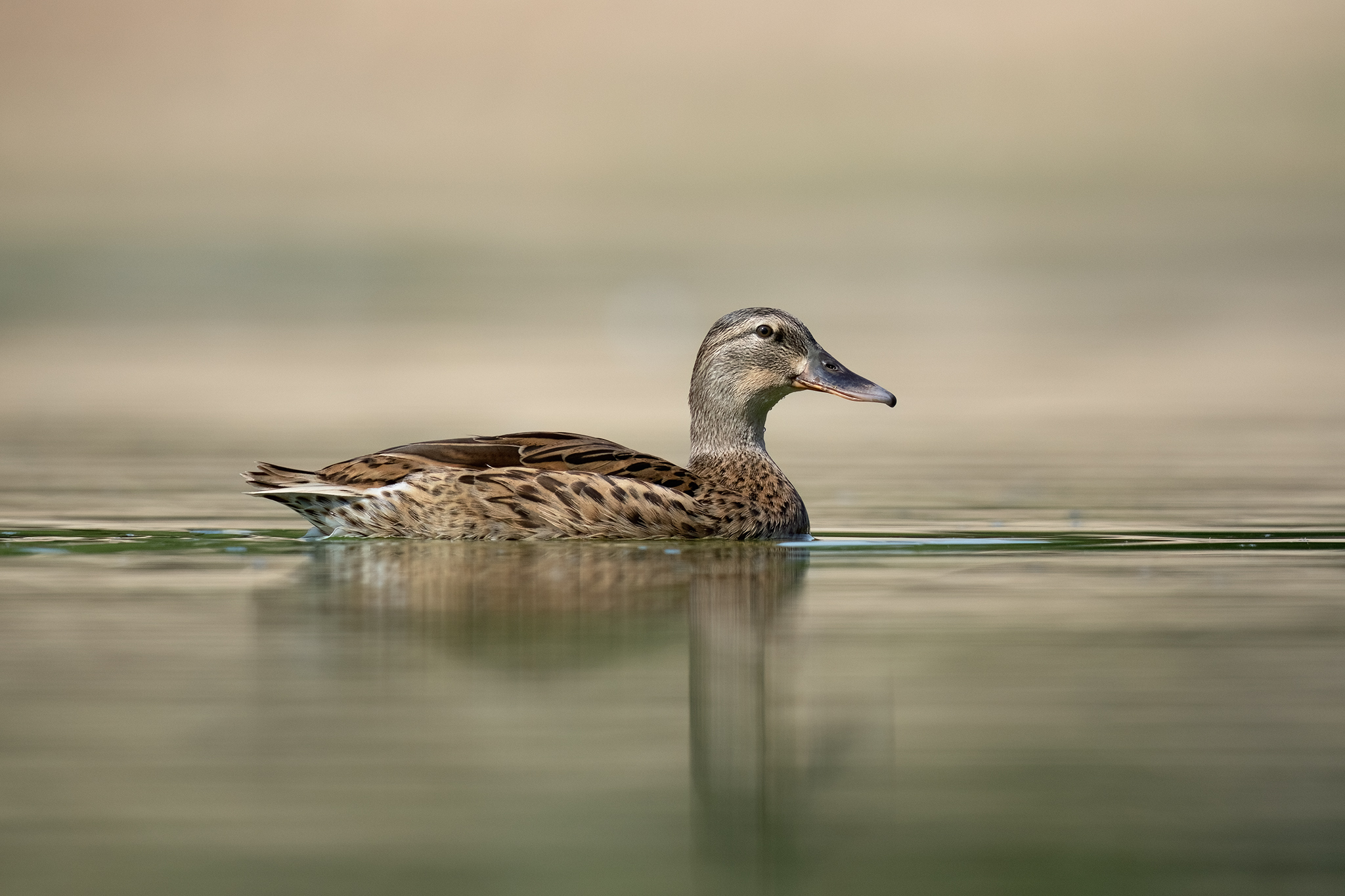 This most familiar of ducks is a winter visitor. As with most ducks, the male and female have very different plumages. The male is colourful in order to attract a mate, while the female is cryptically coloured to camouflage her while sitting on the nest. Although a bird of ponds and lakes, the Mallard will feed in areas of wet grass. Typically the male is silent, while the female utters the famous "quack-quack" call.