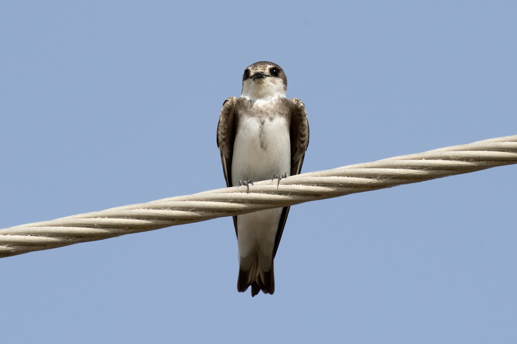 The Sand Martin is a small, active passage migrant recorded in Qatar throughout the year, though primarily during spring and autumn migrations. Known for its rapid flight and chattering call, it is often seen in flocks flying over water or perched on wires.