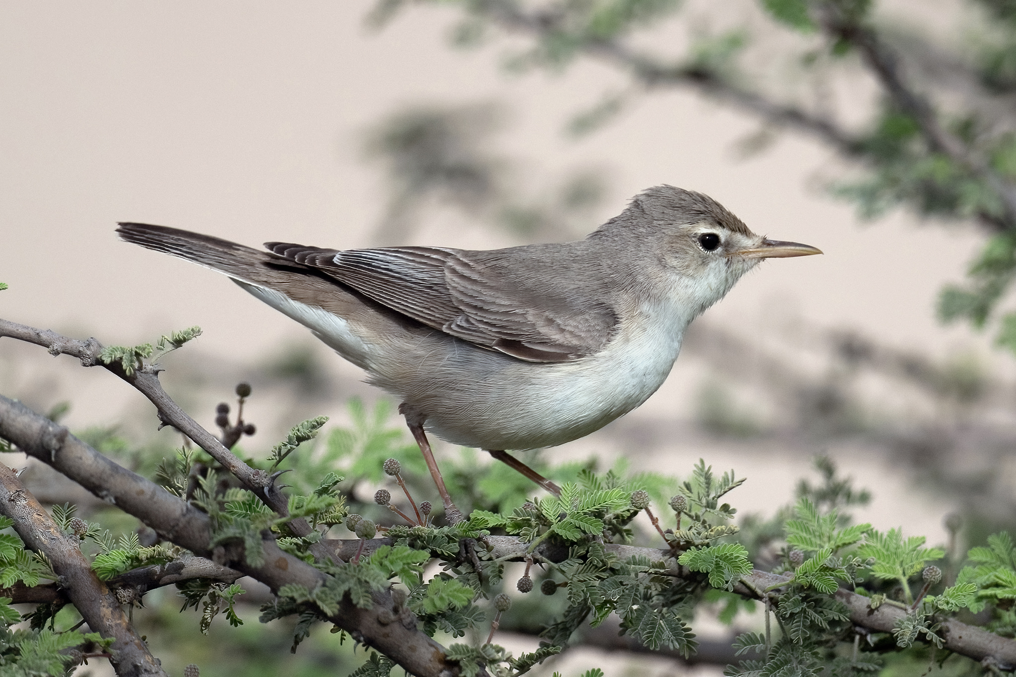 A frequent spring and rare autumn migrant. It is a larger version of the Eastern Olivaceous Warbler and a much bolder species which can often be closely approached. It frequently comes to the ground to look around rocks and stones for insects. This behaviour and its habit of calling more readily, a loud short "tcheck", mean it is a much more noticeable bird, despite having dull grey plumage.