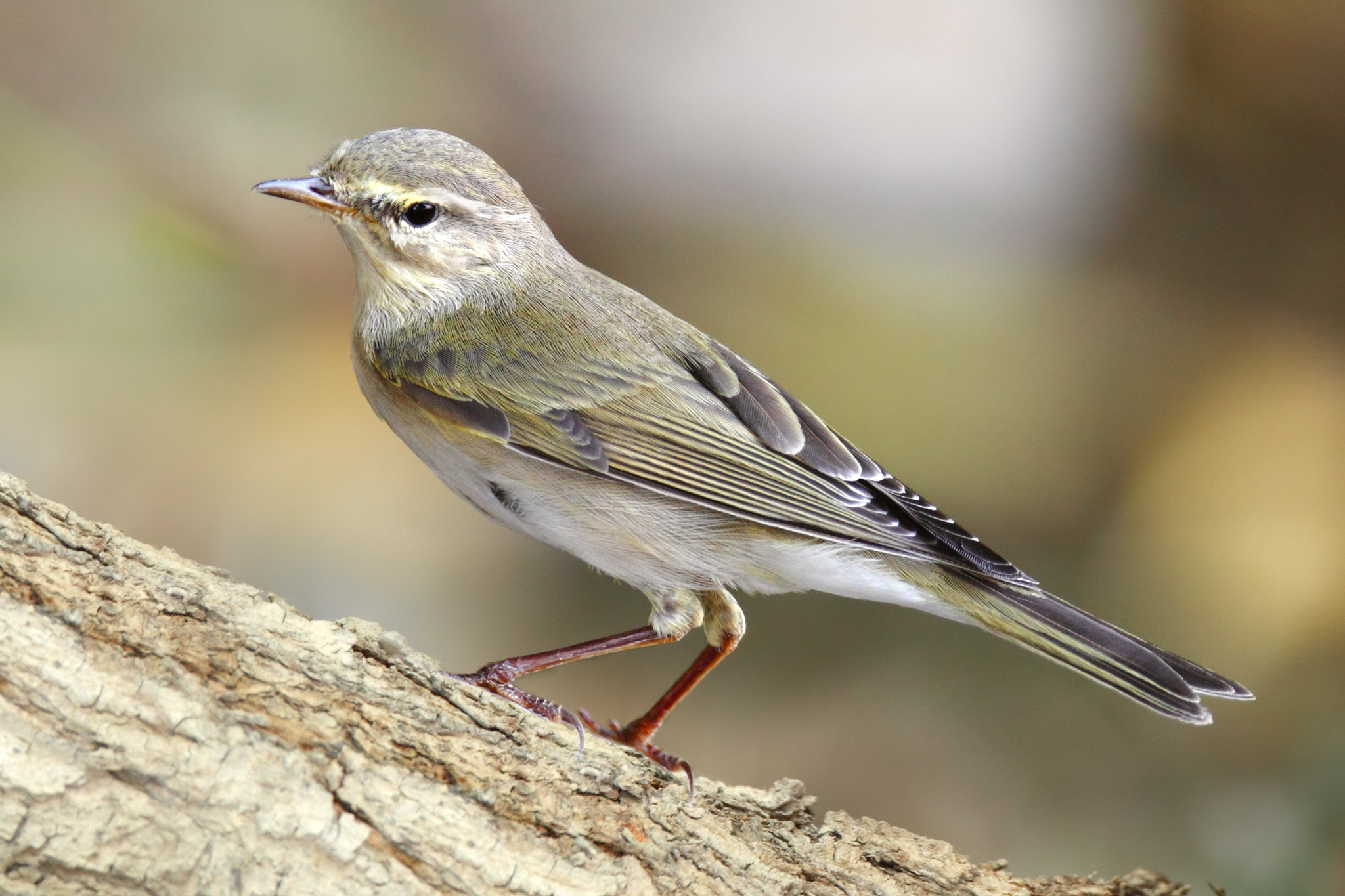 Orangey-brown legs, which distinguish it from the Common Chiffchaff, whose legs are black.