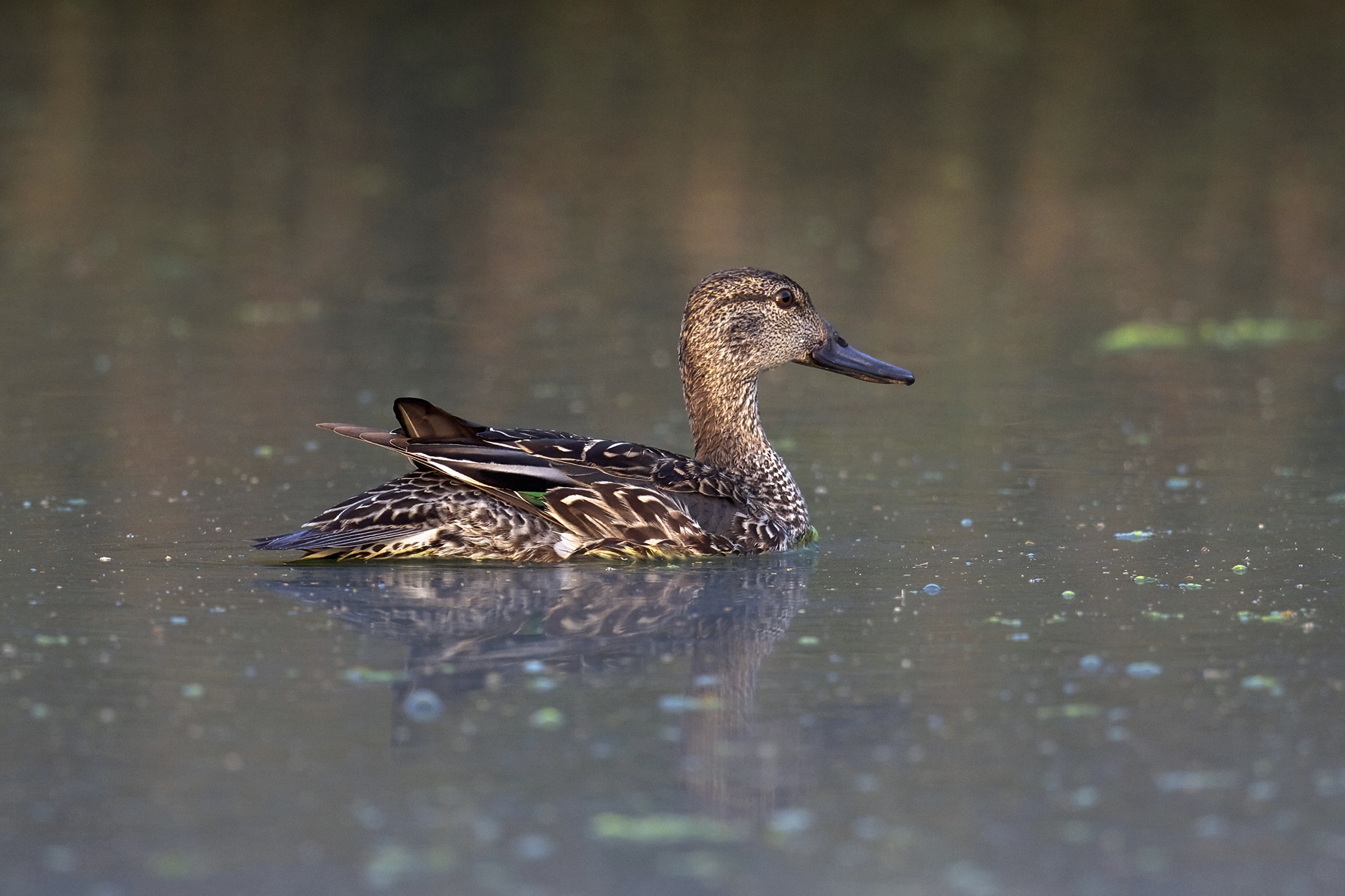 • This diminutive and handsome duck is a very common passage migrant and winter visitor. It is found at the shallow margins of freshwater ponds and lakes, as well as salt water marshes, feeding on vegetation. When disturbed, it flies up almost vertically off the water to escape predators. It is the smallest of Qatar's ducks. The male has a distinctive whistling call, while the female utters a high-pitched "quack".